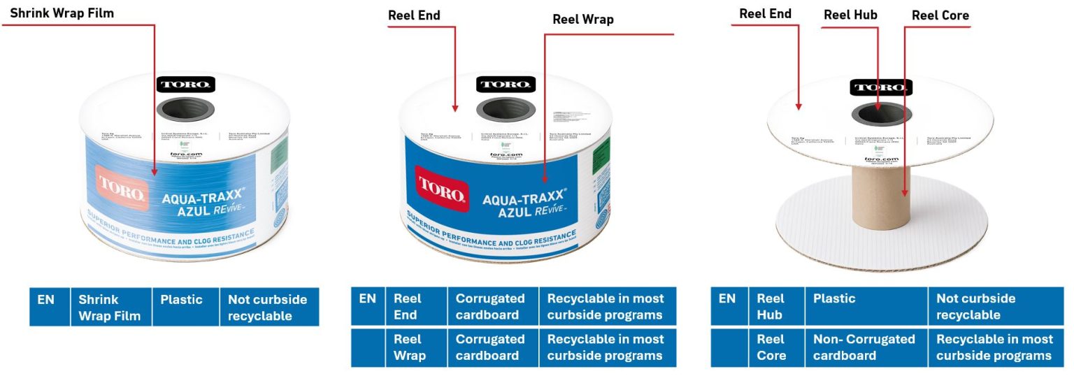 Aqua-Traxx Azul® is the most clog-resistant drip in the market. It is made from High-Density Polyethelene (HDPE) polymer, and it is NOT curb-side recyclable. Toro Ag offers a landfill diversion referral service for growers located in California and the Pacific Northwest region of the United States. See more details below.